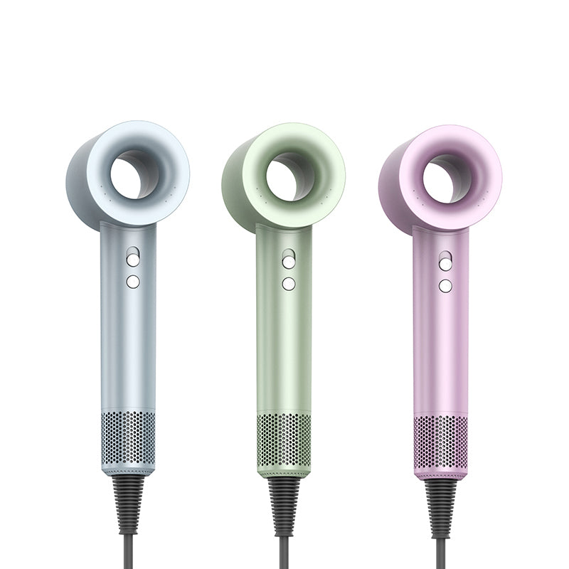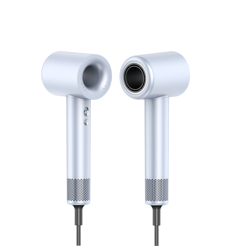 This is the High-Speed Bladeless Hair Dryer (Model H19), a premium styling tool that combines efficient drying, gentle hair care, and quiet operation. Powered by a 110,000 RPM high-speed brushless motor, it delivers 22m/s strong airflow for fast drying while minimizing heat damage. It features a sleek bladeless design, 6 carefully tuned pastel color options, and user-friendly details (e.g., magnetic nozzle, detachable filter cover). Equipped with 200 million high-concentration negative ions and 6-layer noise reduction technology, it transforms dry/frizzy hair into smooth strands while operating as low as 60dB—making it both functional and comfortable to use.