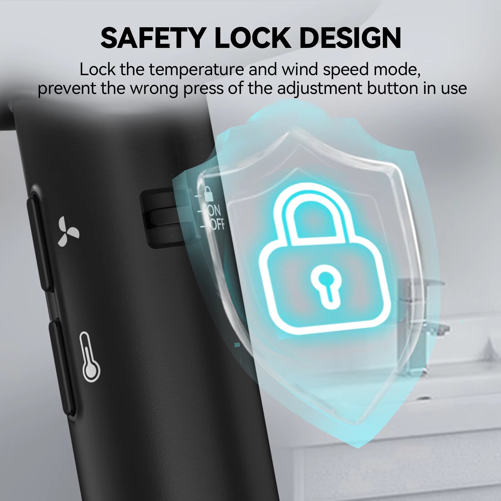 The built-in HD LCD display lets you customize 3 wind speed levels and 5 heating modes (50°C/80°C/120°C, cold wind, hot-cold cycle) for tailored care. User-centric features like a safety lock (prevents accidental setting changes) and auto-clean technology (activated by long-pressing the cool air button for 3s when powered off) make it both functional and low-maintenance.
