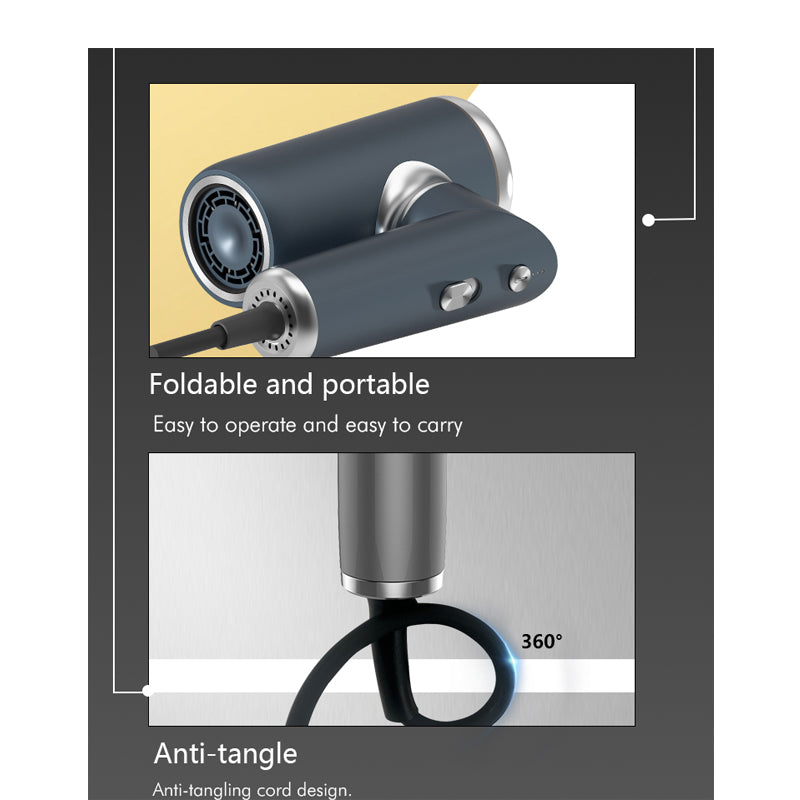 Foldable Portable High-Speed Hair Dryer (100,000 RPM BLDC Motor) – Custom Pattern Design, Warm/Cold Air, Anti-Tangle Cord & Smart Temperature Control